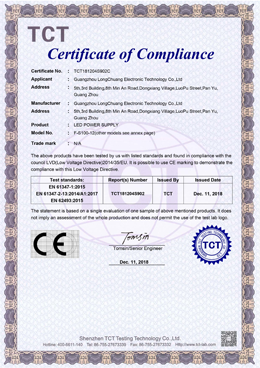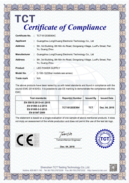 廣州龍創(chuàng)電子科技有限公司 成立于2009年專業(yè)從事LED AC-DC開關(guān)電源及驅(qū)動(dòng)電源的開發(fā)、生產(chǎn)及銷售。公司座落于廣州番禺,交通便捷。廠區(qū)面積4000平方米;年產(chǎn)能100多萬臺(tái)。產(chǎn)品已獲得CCC 、CE&RoHS等證書,遍布國(guó)內(nèi)外市場(chǎng),遠(yuǎn)銷全球,如歐美、南美、中東、東南亞及港臺(tái)等60個(gè)國(guó)家和地區(qū),在行業(yè)內(nèi)享有一定的知名度。